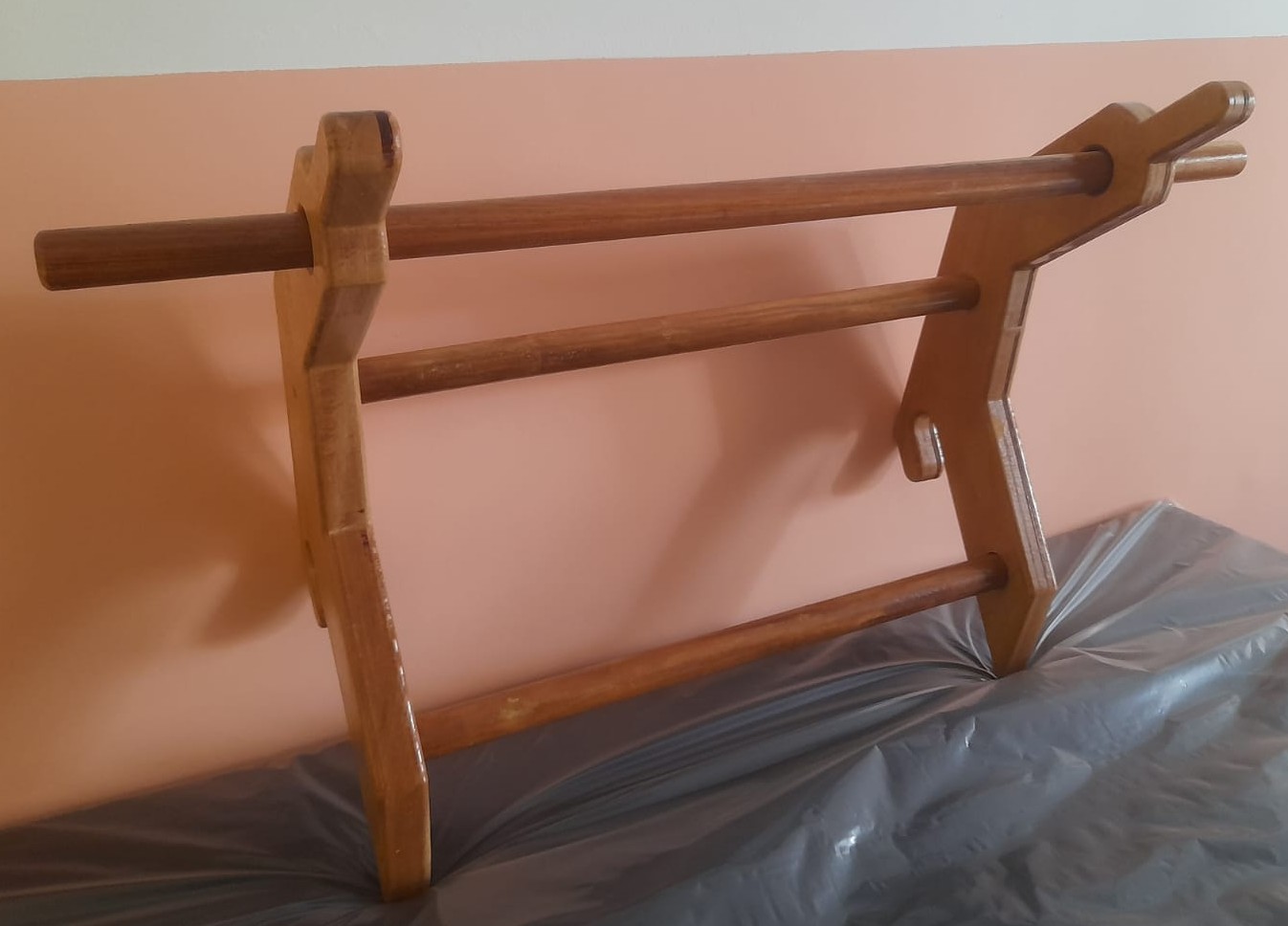 Bastões em madeira garapeira, ou, eucalipto de 35 mm de diâmetro.